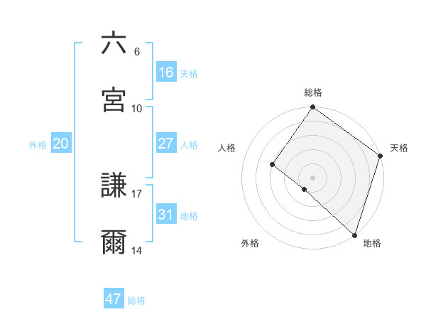六宮 謙爾さんを姓名の画数から五運を鑑定