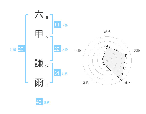 六甲 謙爾さんの総格は42画の3点!