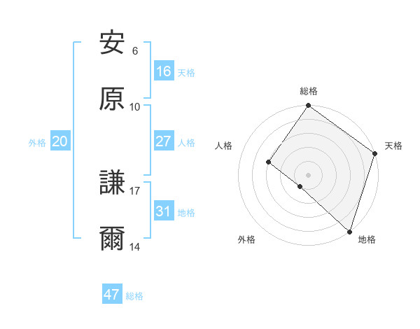 安原 謙爾さんの総格は47画の5点!
