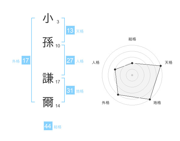 小孫 謙爾さんの総格は44画の2点!