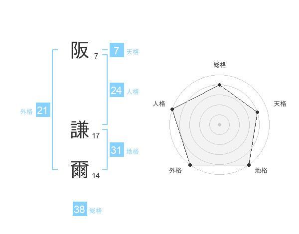 阪 謙爾さんを姓名の画数から五運を鑑定