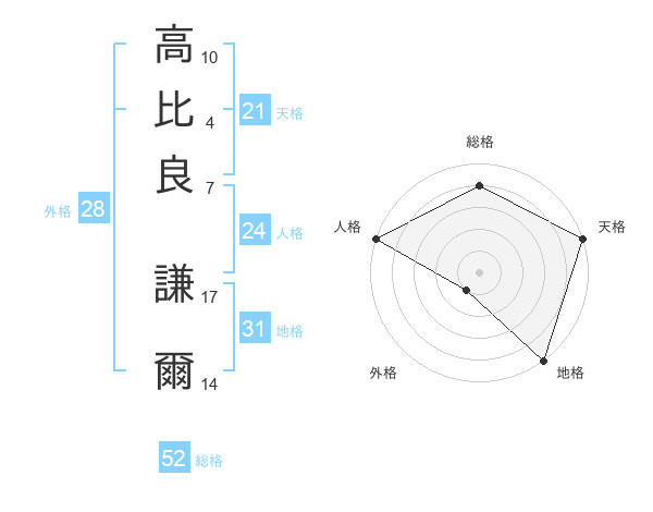高比良 謙爾さんの天格は21画の5点!