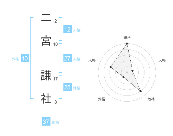 二宮 謙社さんの総格は37画の5点!