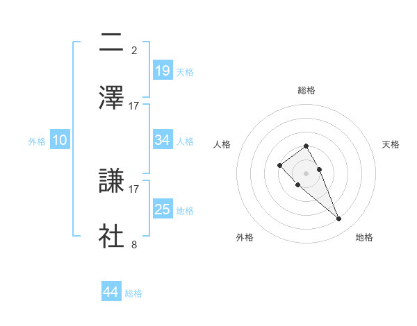 二澤 謙社さんを姓名の画数から五運を鑑定