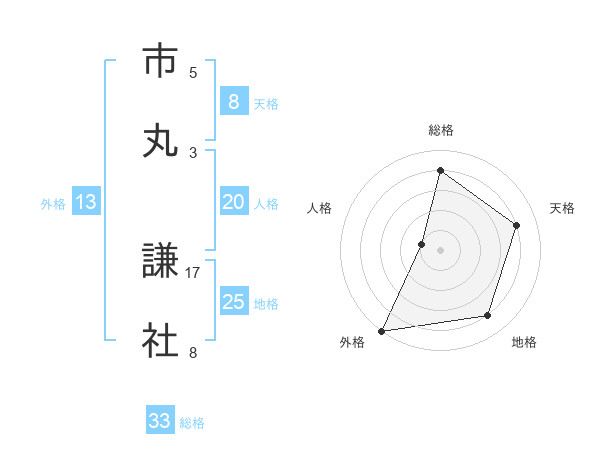 市丸 謙社さんの総格は33画の4点!