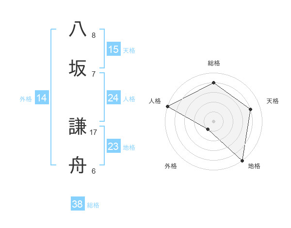八坂 謙舟さんを姓名の画数から五運を鑑定