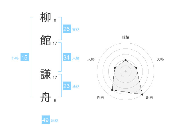 柳館 謙舟さんを姓名の画数から五運を鑑定