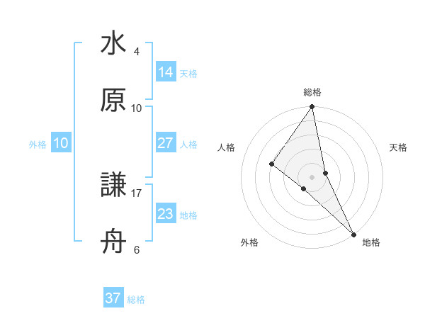 水原 謙舟さんを姓名の画数から五運を鑑定