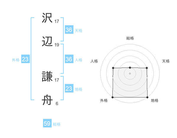 沢辺 謙舟さんの総格は59画の1点!