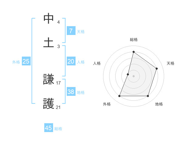 中土 謙護さんの総格は45画の4点!