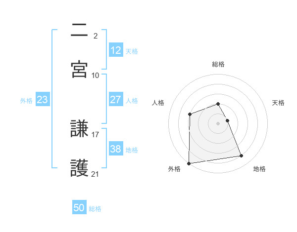 二宮 謙護さんの総格は50画の2点!