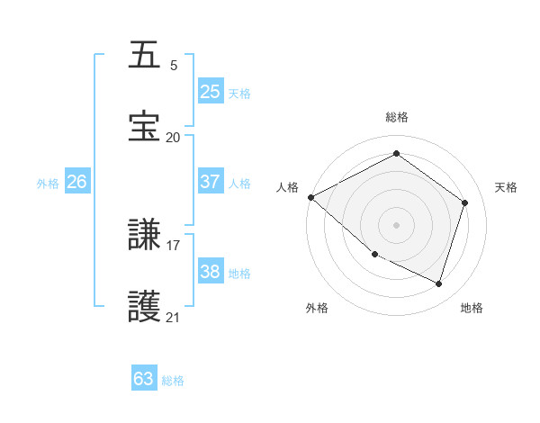 五宝 謙護さんを姓名の画数から五運を鑑定