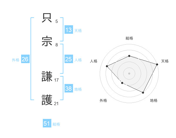只宗 謙護さんを姓名の画数から五運を鑑定