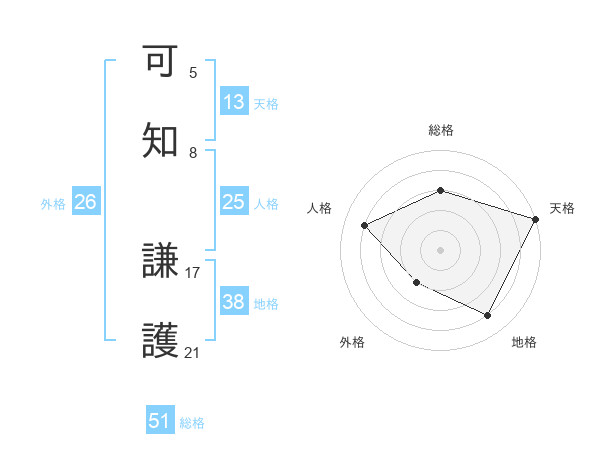 可知 謙護さんの総格は51画の3点!