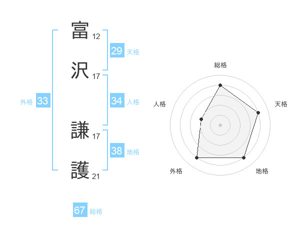 富沢 謙護さんを姓名の画数から五運を鑑定