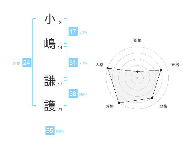 小嶋 謙護さんを姓名の画数から五運を鑑定