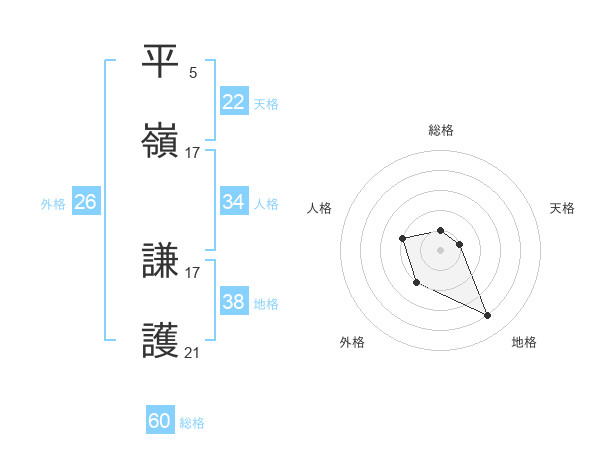 平嶺 謙護さんを姓名の画数から五運を鑑定