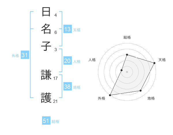 日名子 謙護さんを姓名の画数から五運を鑑定