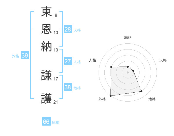 東恩納 謙護さんを姓名の画数から五運を鑑定