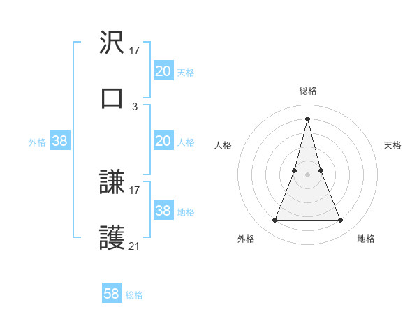 沢口 謙護さんを姓名の画数から五運を鑑定