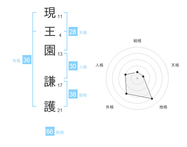 現王園 謙護さんを姓名の画数から五運を鑑定