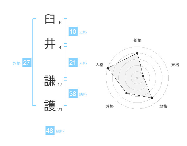 臼井 謙護さんを姓名の画数から五運を鑑定