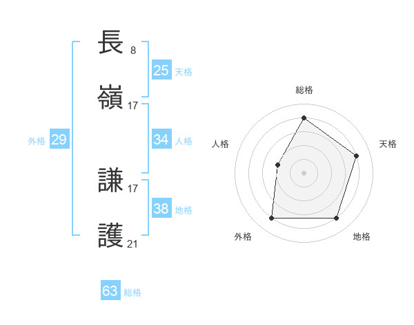 長嶺 謙護さんを姓名の画数から五運を鑑定