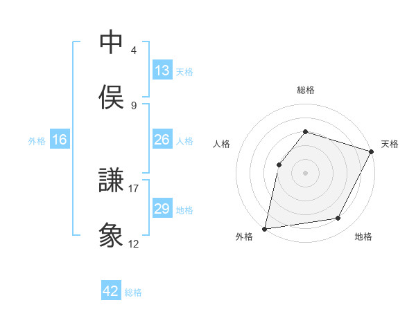 中俣 謙象さんを姓名の画数から五運を鑑定