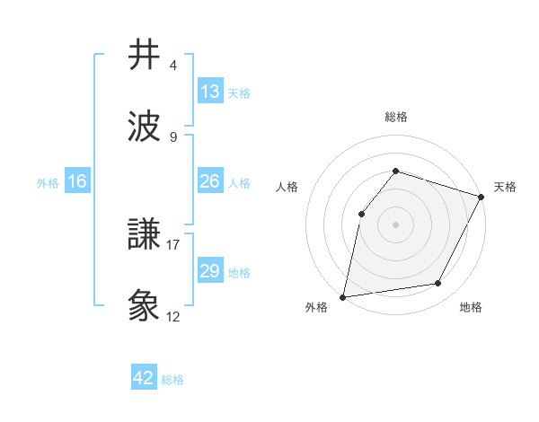 井波 謙象さんの総格は42画の3点!