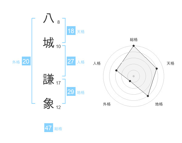 八城 謙象さんの総格は47画の5点!