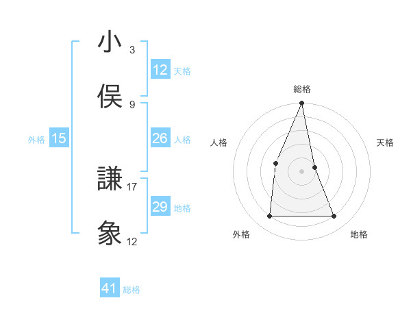 小俣 謙象さんの総格は41画の5点!