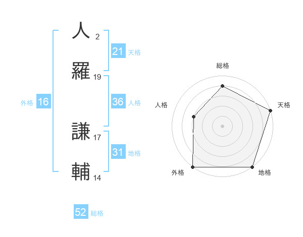 人羅 謙輔さんの総格は52画の4点!