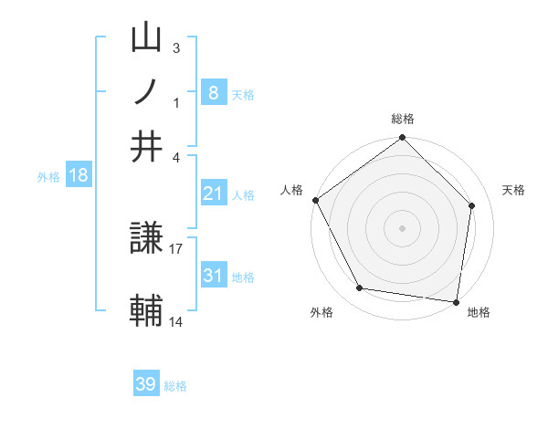 山ノ井 謙輔さんの総格は39画の5点!