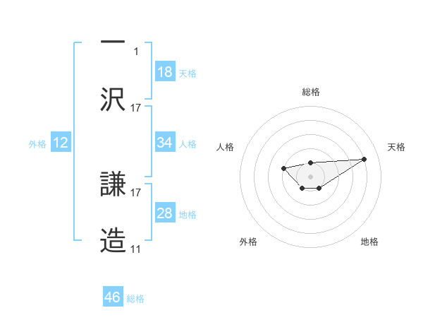 一沢 謙造さんを姓名の画数から五運を鑑定