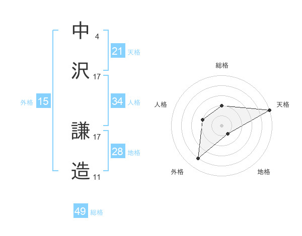 中沢 謙造さんの天格は21画の5点!
