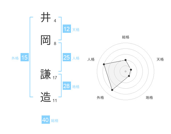 井岡 謙造さんの天格は12画の1点!