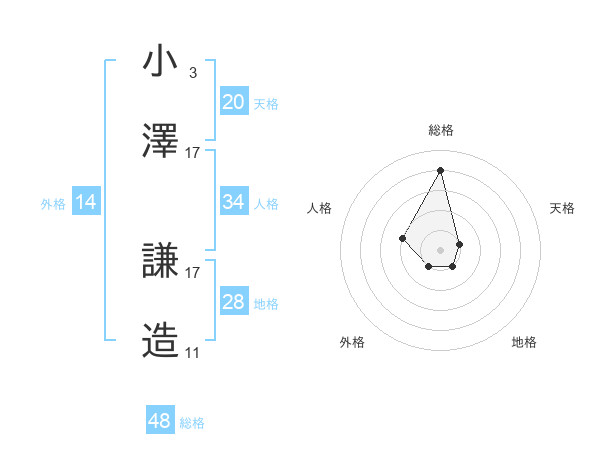小澤 謙造さんを姓名の画数から五運を鑑定