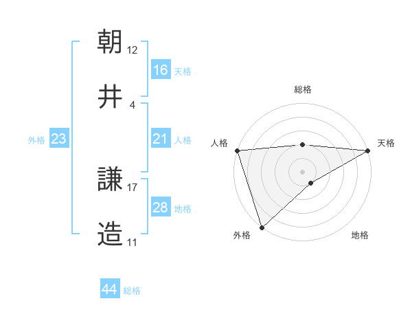 朝井 謙造さんの天格は16画の5点!