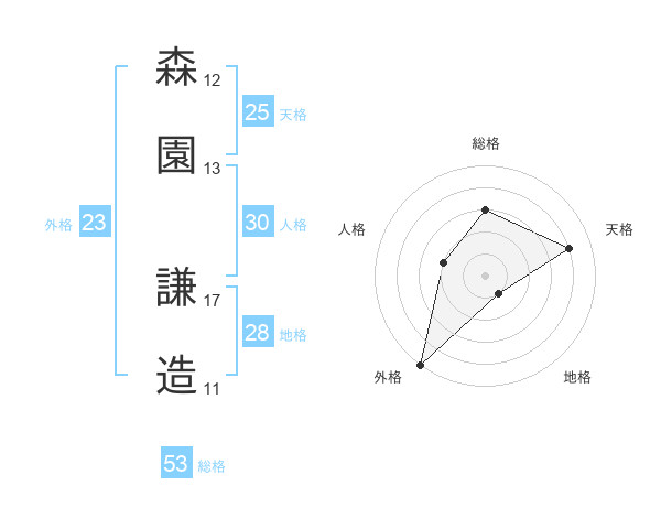 森園 謙造さんの総格は53画の3点!