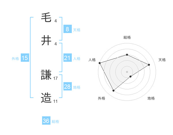 毛井 謙造さんを姓名の画数から五運を鑑定