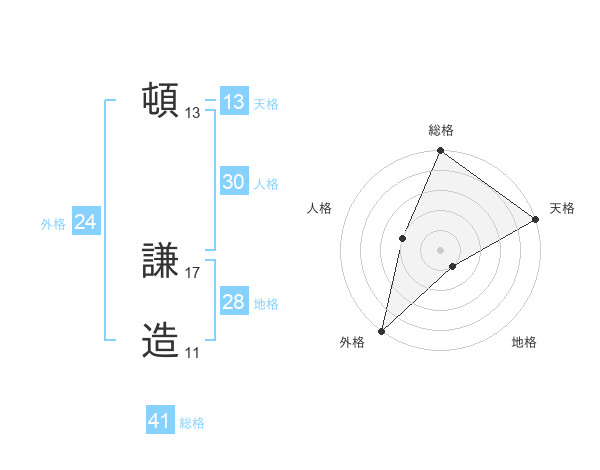 頓 謙造さんの天格は13画の5点!