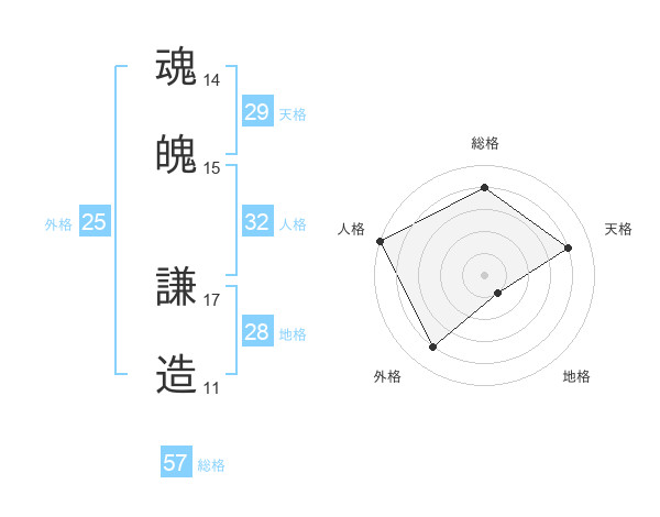 魂魄 謙造さんを姓名の画数から五運を鑑定