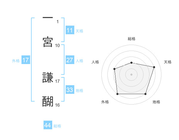 一宮 謙醐さんを姓名の画数から五運を鑑定