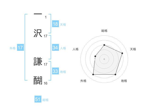 一沢 謙醐さんを姓名の画数から五運を鑑定