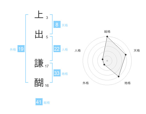 上出 謙醐さんを姓名の画数から五運を鑑定