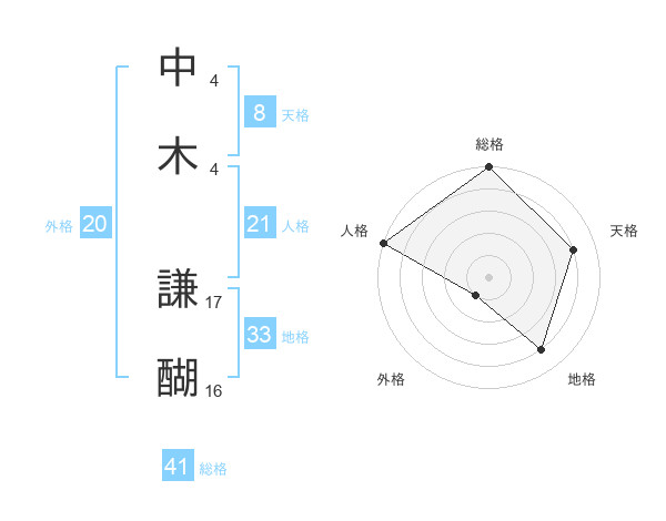 中木 謙醐さんの総格は41画の5点!
