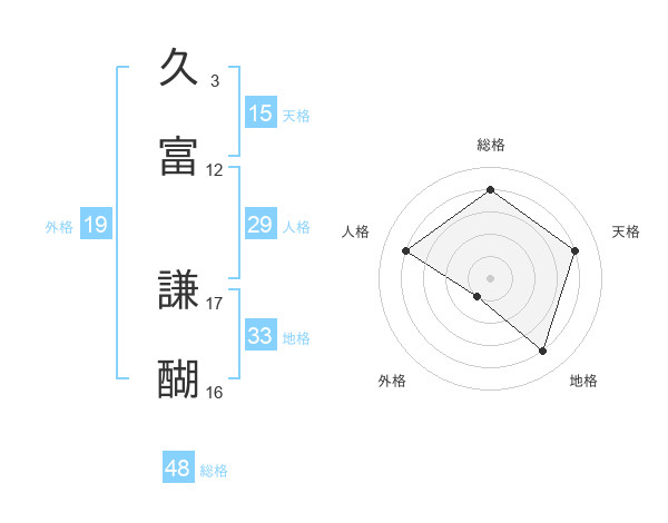 久富 謙醐さんを姓名の画数から五運を鑑定