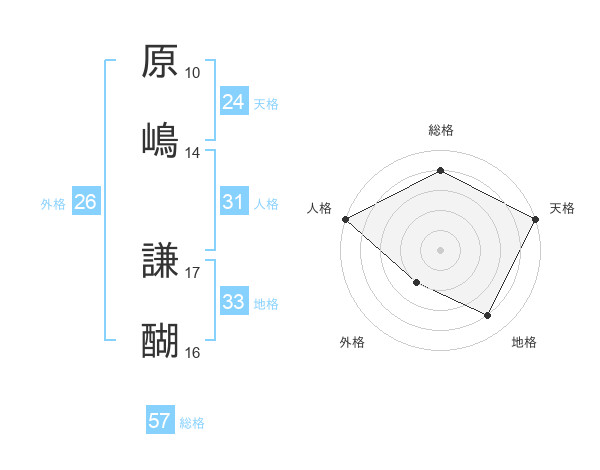原嶋 謙醐さんを姓名の画数から五運を鑑定