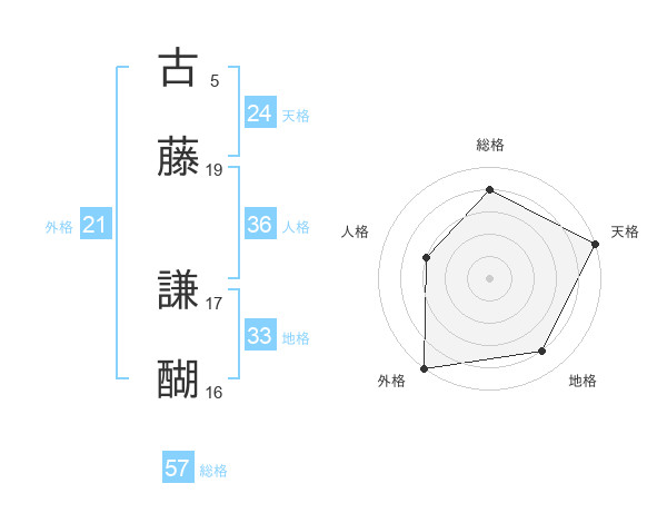 古藤 謙醐さんを姓名の画数から五運を鑑定