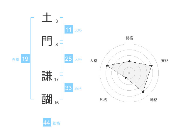 土門 謙醐さんを姓名の画数から五運を鑑定